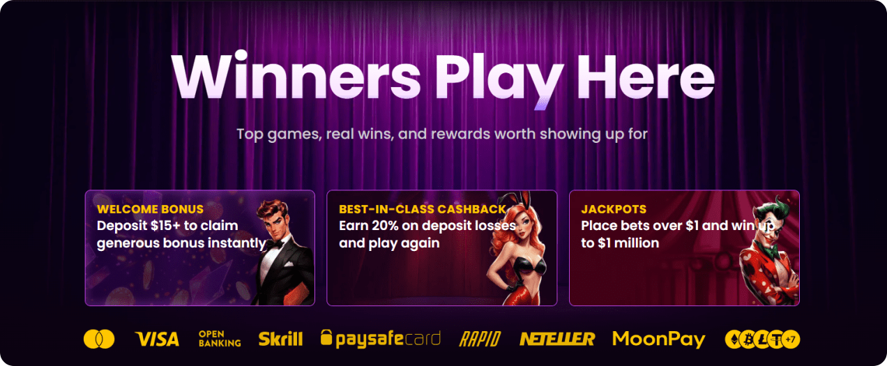 Deposits are processed right away, so participants can start playing right away. Visa, MasterCard, Skrill, Neteller, and a few cryptocurrencies like Bitcoin and Tether are the most common ways to pay.